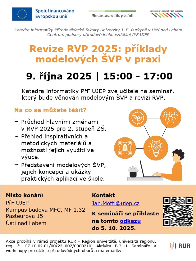 Akce probíhá v rámci projektu RUR – Region univerzitě, univerzita regionu, re. č. CZ.10.02.01/00/22_002/0000210. Aktivita B.3.11 Semináře a workshopy pro učitele přírodovědných oborů a matematiky