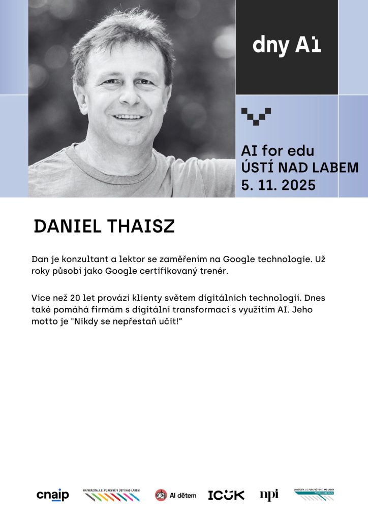Festival Dny AI 2025 propojuje univerzity, města, školy i firmy po celé České republice. Jeho cílem je přiblížit umělou inteligenci široké veřejnosti a ukázat její praktické přínosy v každodenním životě i vzdělávání. Festival pořádá Česká národní AI platforma (CNAIP) ve spolupráci s projektem Technologická inkubace agentury CzechInvest a organizací AI dětem. Generálním partnerem je Google, hlavním partnerem Hewlett Packard Enterprise. Dalšími partnery jsou DataSentics, Gen Digital, NEWTON Media a Profinit EU. Mediálním partnerem je časopis WIRED CZ. Regionálním partnerem akce je Inovační centrum Ústeckého kraje (ICUK).