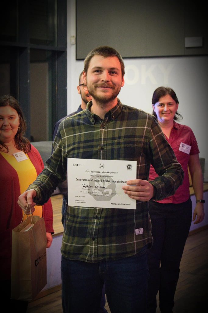 Přednáška Mgr. Vojtěcha Kasiče s názvem „Tourists? Who cares: A Striking Example of Chamois Habituation in Northern Czechia“ získala dokonce 1. místo a cenu odborné poroty i publika (sdílené 1. místo). Vojtěch Kasič vystudoval aplikovanou biologii a ekologii na Přírodovědecké fakultě Univerzity J. E. Purkyně v Ústí nad Labem. Již v rámci obou svých závěrečných prací se začal zabývat introdukovanými populacemi kamzíka horského v České republice. Ve svém výzkumu se dlouhodobě zaměřuje na kamzičí populaci na severu Čech z široké škály etologických a biologických pohledů – od vlivu antropogenní disturbance, přes mezidruhové interakce s dalšími druhy kopytníků a vliv lovu, až po parazitologické průzkumy.