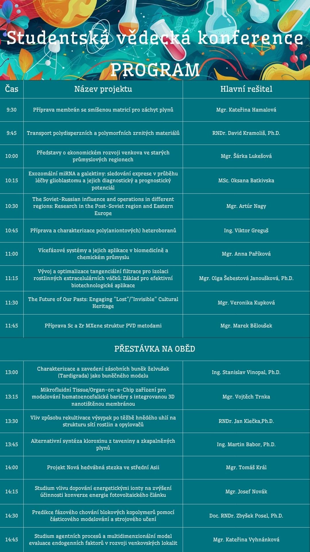 Zveme Vás na Studentskou vědeckou konferenci PřF UJEP, která se uskuteční dne 5. 2. 2026 od 9:30 v přednáškové aule CPTO 1.04.