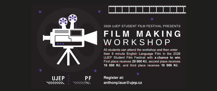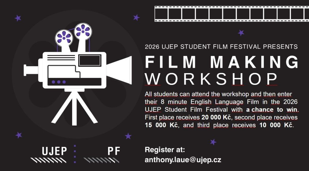 Vyrobit krátký filmový příběh není práce na dva dny. Ale za dva dny se dá hodně dozvědět o tom, jak na to. Příležitost k tomu mají všichni studenti na workshopu, který 27. – 28. ledna 2026 pořádá ředitel festivalu UJEP Student Film Festival Anthony Laue, sám filmař a filmařský mentor a americký lektor angličtiny na katedře anglistiky Pedagogické fakulty UJEP.