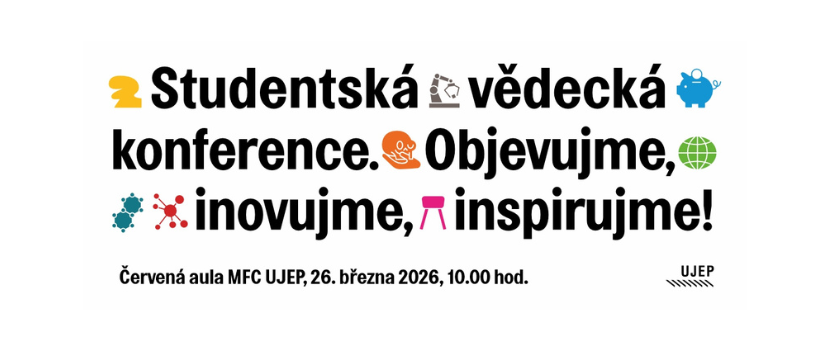 Přijměte pozvání na Studentskou vědeckou konferenci 2026, kterou pořádá Univerzita Jana Evangelisty Purkyně v Ústí nad Labem. Konference se uskuteční 26. března 2026 od 10:00 v Červené aule MFC a představí se na ní ti nejlepší mladí vědci a vědkyně ze sedmi fakult naší univerzity.